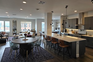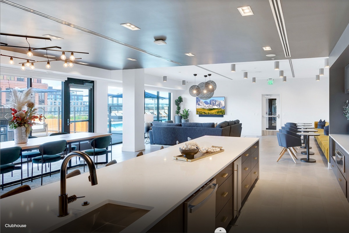 Entertain in the chef’s kitchen with seating for 12, unwind in the spa-style bath with rainfall shower + soaking tub, and enjoy access to the rooftop pool, hot tub, fitness center, private workspaces, and tandem parking.